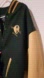 Color: Emerald body with cream sleeves and striped ribbed trim