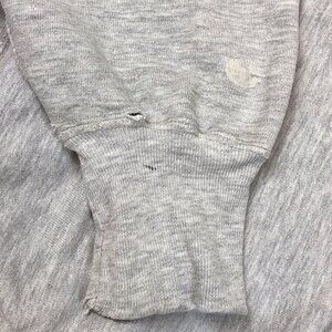 Sweatshirt is disressted with wear around embroidered front, neck and cuffs. See all photos
