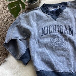 True vintage Michigan denim pullover sweatshirt. Made in the USA. Has the most awesome vintage wash … a must buy!!