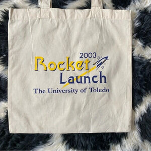 Vintage University of Toledo Ohio 2003 Beige Rocket Launch Canvas Tote Bag