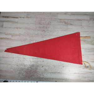 Used vintage condition with heavy wear, stains, tears, pinholes, and bending. Short end point of pennant is torn off and missing. Will ship folded. Measures approximately 28" long. See photos for more detail.