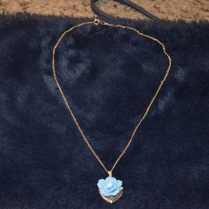 Vintage Unknown Necklace Pendant Ceramic Rose on Metal Heart Shaped Tray Chain