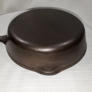 In good vintage condition. Refurbished and seasoned with two coats of flax oil. This pan has a slight wobble (1/16" on each side) and would be best on an electric element range of gas stove. The cooking surface shows marks from use. It would be a great gift, display, or daily user.