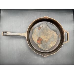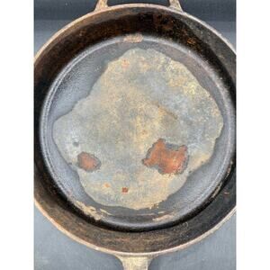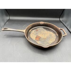 This vintage 10 ½-inch unmarked cast iron skillet is a dependable piece of cookware with timeless appeal. It has some surface rust, but nothing that cannot be restored with a proper cleaning and seasoning. The skillet heats evenly, sits well, and is built to last for generations. A great choice for cooking, camping, or adding to a vintage cast iron collection. Great value!!