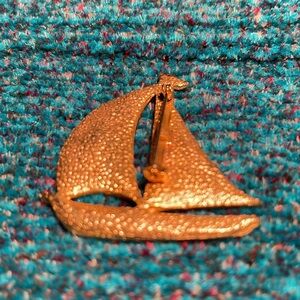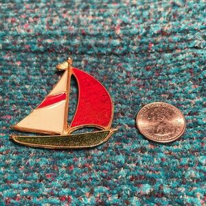 Vintage Unmarked Gold Tone Enamel Sailboat Brooch