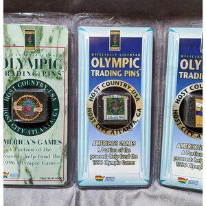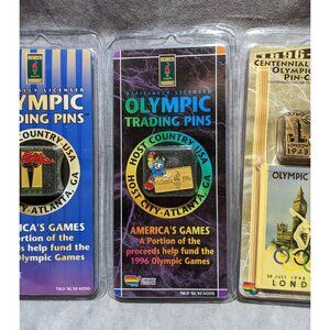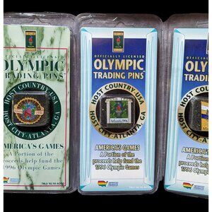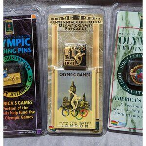 It's a set of 6 unopened trading pins from the 1996 Olympic games, with Atlanta, Georgia as the host city. Each the pins are different, and they're all brand new and sealed in their original packaging. 5 of them are specific to that Atlanta, Georgia games, while one is part of the Centennial Collection, and is a tribute to the 1948 London, England Olympics. Fun for collectors!