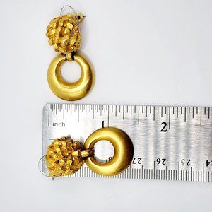 Vintage Unsigned Anne Klein Gold-Tone Basket Weave Hoop Drop Earrings, Pierced