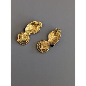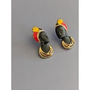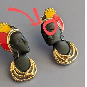 Vintage Unsigned Blackamoor Matte Black Gold Enamel Earrings FLAW