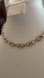 This is a lovely vintage unsigned faux pearl & rhinestone gold tone link collar necklace with hook clasp. It measures 16.25" in length but can be worn shorter. It's in strong preloved condition with all stones intact.