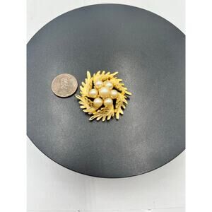 Vintage Unsigned Gold Tone Faux Pearl Cluster Wreath Brooch