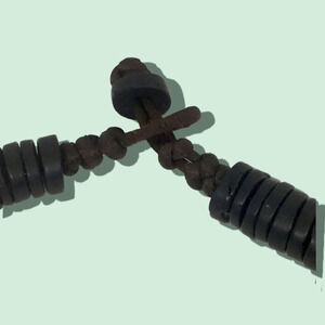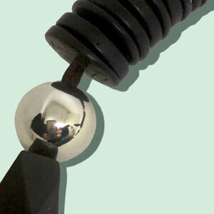 Vintage Unsigned Large Black Flat Bead Geometric Graduated Necklace