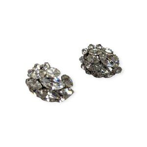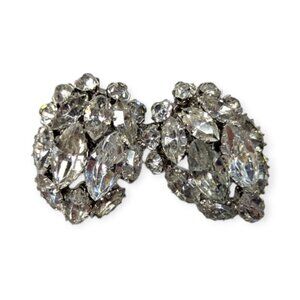 Vintage unsigned oval multi rhinestone clip on earrings.