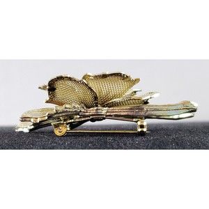 Vintage Unsigned Three Dimensional Metal Floral Brooch Pin Gold Tone Flower