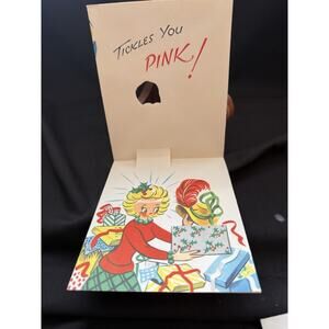 Vintage Unused Mechanical Xmas Greeting Card Peek-a-boo Gift Box