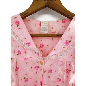 Vintage Unworn Slumber Jane Nightgown Womens Medium Pink Roses Cotton Pajamas