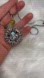 This brooch, like so many others, came in a box of broken jewelry I obtained at an estate sale. This brooch refused to be boring. I added a peridot bead and suspended the wild child from a nice rainbow finish 18k gold plated chain. Unmarked. This chain gets gold and electroplating to make it appear many colors. Peridot is the August birthstone so I wear it frequently for my son. Peridot is also an abundance stone so I felt the diamond look on the silver tone pendent was perfect for abundance.