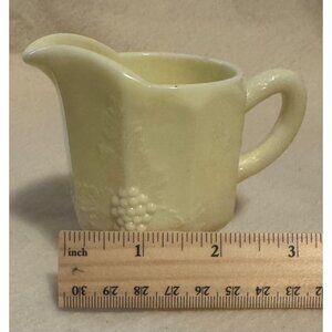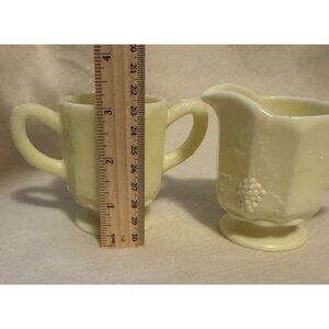 Vintage Uranium Custard Glass Creamer & Sugar Set Grape Pattern on Set