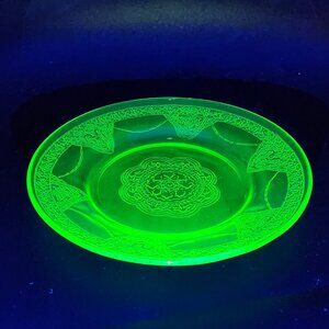 Vintage Uranium Depression Glass Green Patterned Saucer