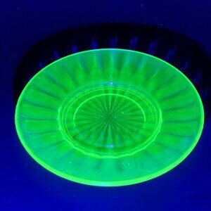 Vintage Uranium Depression Glass Green Patterned Saucer