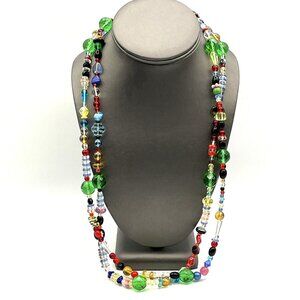 Vintage Uranium Glass Necklace Czech Glass Long Necklace 27"