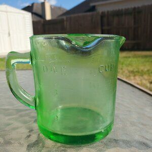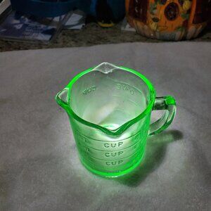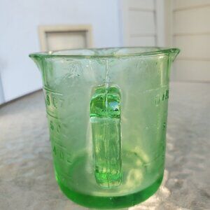 Vintage Uranium Green Depression Glass Measuring Cup.