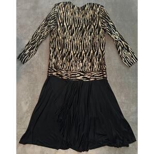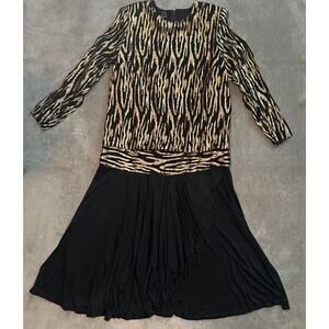 Vintage Ursula of Switzerland Evening Dress Size 18 Black Gold Drop Waist Party