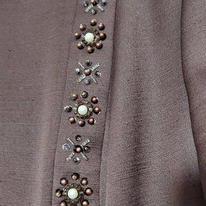 Vintage Uschi Modell Mod Shift Dress with Bead Embroidery Size 46. This vintage mod dress has incredible beading detail. It's simple yet intriguing! The approximate measurements are as follows: Bust 40", Waist 36", Hips 44" and Length 39". Fully lined and not much stretch.