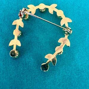 Vintage U-shape faux Pearl flower and Crystal leaf DELICATE Brooch, in Gold plate, with C clasp DISCOUNTED