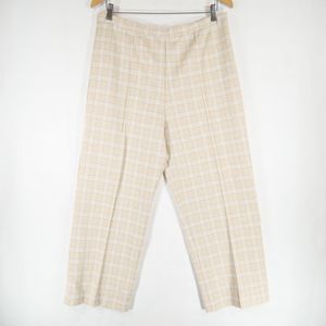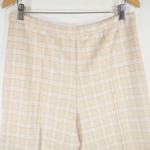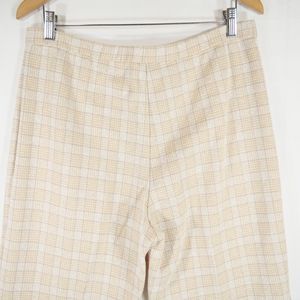 Vintage Usia Women's Tweed Dress Pants Cream Tan Elastic Waist Polyester Size 16
