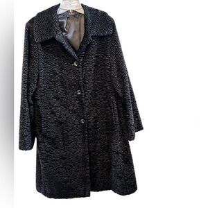 Vintage Utex Black BoucleTextured Faux Fur Long Coat Sz Large