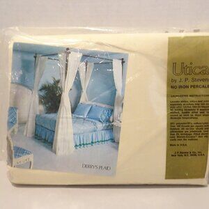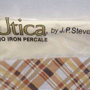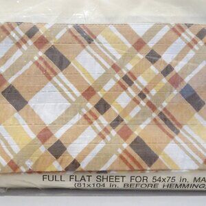 Vintage Utica JP Stevens Brown Tan Plaid Full Flat Sheet NOS Made in USA