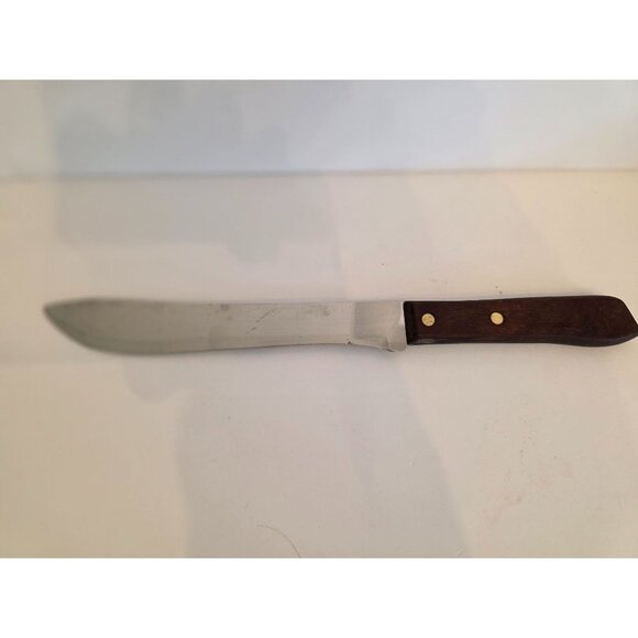 Vintage Utica Super Edge Butcher Knife Stainless Steel Blade Wood Handle