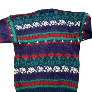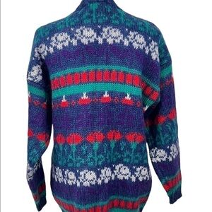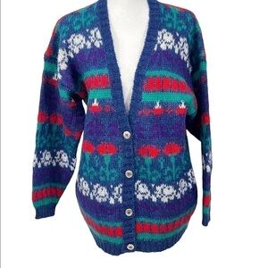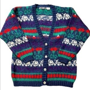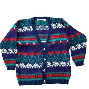 Vintage Women Medium Mohair Blend Striped and Floral Cardigan