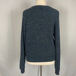 Vintage V Neck Sweater Size XL Blue Pullover Chunky Rib Knit Speckled 80s 90s