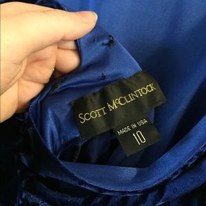 Vintage blue velvet Scott McClintock dress. Deep V in the back. Super elegant and stylish! Fit and flare for figure flattering cut. Size 10. Excellent used condition. Perfect for a holiday party!