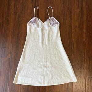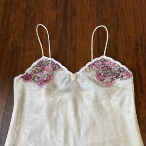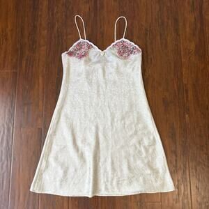 Vintage VAL MODE Slip Dress Womens Sz S Cream Jacquard Lingerie Babydoll Chemise W11902
