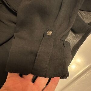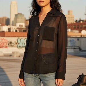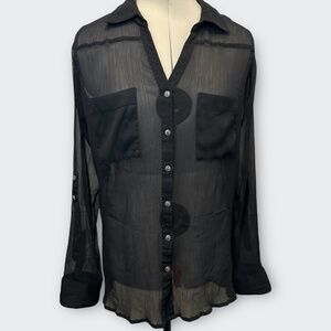 Vintage VANITY Black Sheer Button Down Long Sleeve Blouse L Y2K Whimsigoth Boho