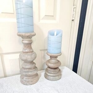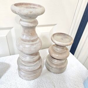 Pinkish Tan Glazed wooden candle holders.