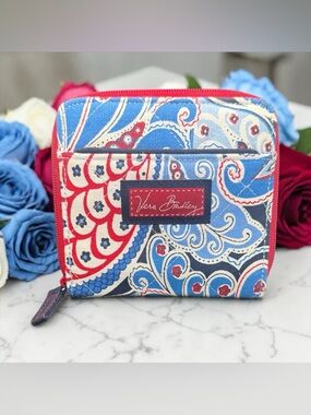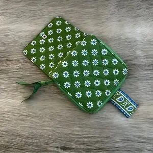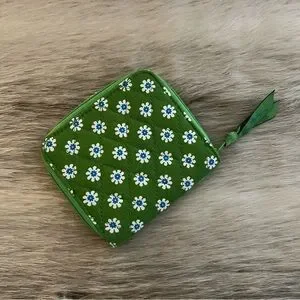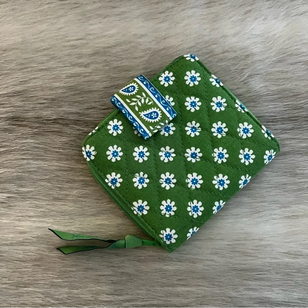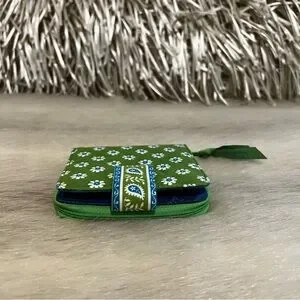 Vintage VERA BRADEY Apple Green 2004 Mini Zip Wallet Green White Y2K Floral