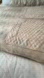 Machine washable sturdy quilted cotton. Please see pictures for size & condition & decide for yourself. The pictures are considered part of the description.