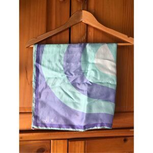 The scarf features retro,abstract,in pastel shades of mint green - lavander