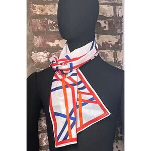 Add to your collection Vintage VERA Neumann Scarf ~ Signed ~ Red, Blue & Orange ~ 13" x 44"