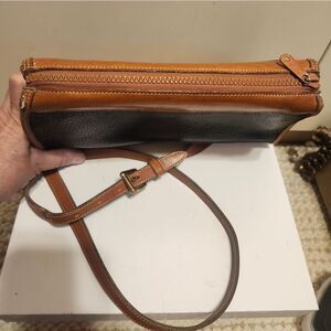 Vintage VG '80s Dooney & Bourke Classic Black/Tan Leather Zip Top Crossbody Bag