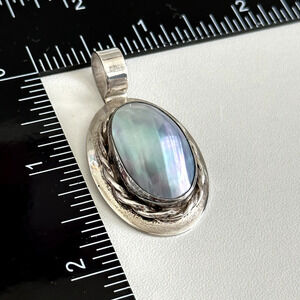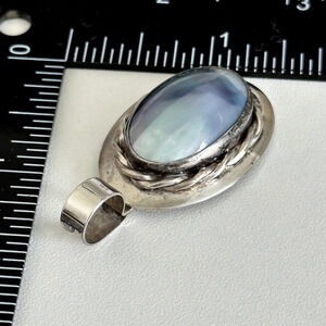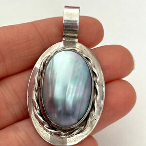 Stunning Vintage VHC Signed 925 Sterling Silver Large Mabe Pearl Blue Purple Oval Pendant