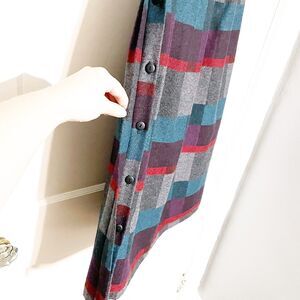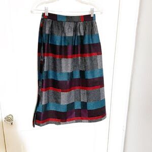 Vintage VICTOIRE Wool Plaid Skirt Gray Blues Size 4 Petite Button Side Academia