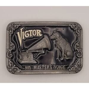 Vintage VICTOR His Master’s Voice Brass & Enamel Belt Buckle Buckles of America