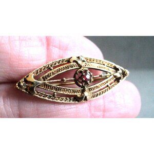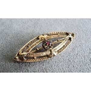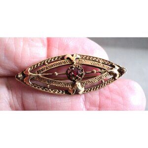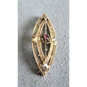 Antique Victorian Etruscan Revival 14k gold & ruby red gemstone brooch
