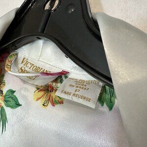 Vintage VICTORIA’S SECRET Women’s Robe Ivory Pink Red Floral Satin Size M/L