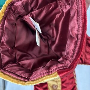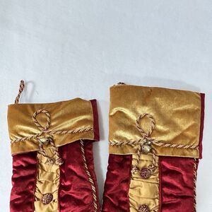 Vintage VILLA BACCI Christmas Stocking Red Gold Satin Buttons and Jingle Bells