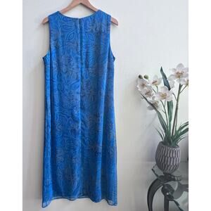 Vintage VIRGO Women's Floral Print Sleeveless Plus Size Midi Dress Blue Size 14
